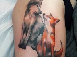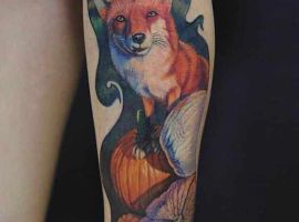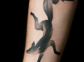 На сьогодні багато цінителів свого тіла, захоплюються нанесенням тату. Якщо в цій справі ви новачок, а бажання набити татуювання у вас не згасає, наші тату майстри з Києва пропонують придивитися до зображення татуювання лисиця. Лисиця – дуже хитра, цікава і завуальована тварина яка згідно Інь і Ян ввібрала у свої джерела як позитивні, так і негативні якості. Це воістину волелюбна тварина, яка багато скаже про свого господаря.