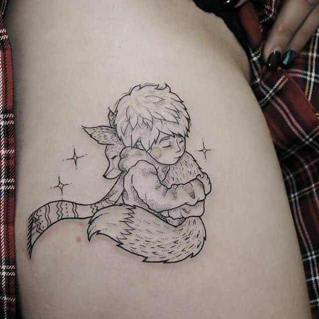 - Мирно сплячий лис в згорнутому клубочку – уособлює сімейні зв’язки або вразливість у своїх думках.