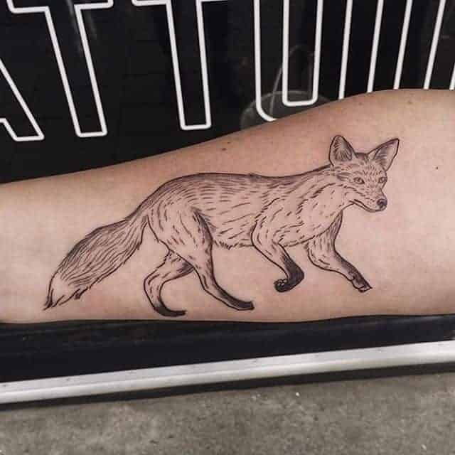Тату лисиці роблять на різних ділянках тіла, де в поєднанні з основною композицією додають безліч інших об’єктів і елементів для створення цілісності образу, головного героя. Тату лисиці на нозі або руці розподіляють на позитивні або негативні якості. Наприклад, щоб показати тату з лисицею з хорошого боку її погляд прикривають окулярами або зображують на задньому тлі квіти. Значення для чоловіків і прояв їх зухвалості зображує лисицю з сигаретою або димом, що вказує на пронизливість і хитрість людини.