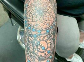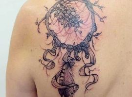 Чоловіки часто вибирають місце тату на руці, плечі, набивають тату ловець снів на нозі, литках. Цілу композицію можна створити з тату ловець снів на спині. Через величезні площі поверхні спини, ескіз можна доповнити безліччю елементів, зобразивши цілу історію в ньому. А ось людині, яка має на меті наділити знак виключно захисними характеристиками оберега, краще вибрати місце для тату ловець снів на шиї. Дівчата легко зможуть заховати його за волоссям, а чоловіки під одягом. Крім того, вважається, що чим ближче малюнок до голови, тим сильніше його вплив на людину. Досвідчений майстер студії «Альянс» у Києві створить ескіз спеціально для Вас.