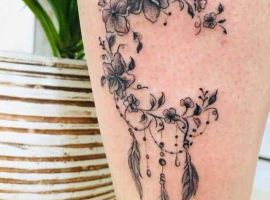 2. Варіант з квітами набивають собі дівчата. Це символ жіночності, витонченості, привабливості, жіночого магнетизму. Настрій всієї композиції також буде залежати від конкретно обраної квітки. Розгін від велелюбний, пристрасної троянди до невинної, доброї кульбаби.