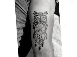 3. Тату ловець снів з совою має значення мудрості, таємничості, загадок як конкретної людини, так і життя в цілому. Так як сови не сплять ночами, такий малюнок ще може позначати захисника вночі.
