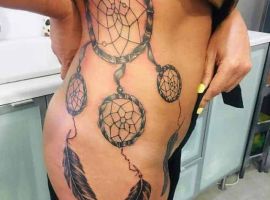 Місце нанесення картинки може підійти будь-яке. Ловець снів татуювання на зап’ясті частіше вибирають дівчата. Ідеально також для них підійде місце на ребрах. Хоч процес нанесення буде досить болючим, проте виглядати буде дуже жіночно, привабливо. При чому заховати картинку дуже легко при необхідності. Популярні також жіночі тату ловець снів на стегні.