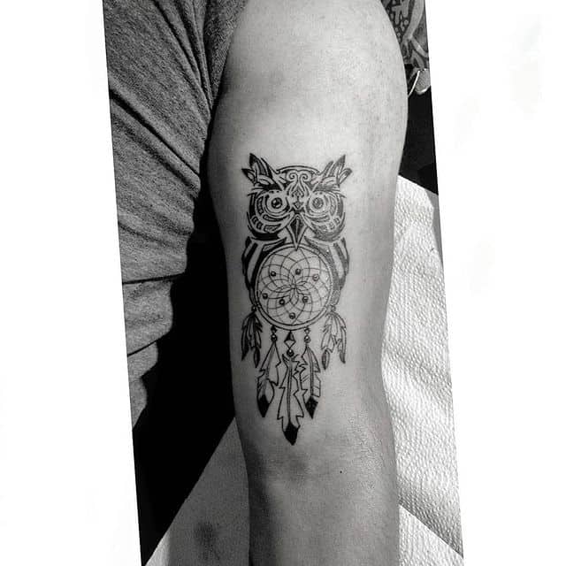 3. Тату ловець снів з совою має значення мудрості, таємничості, загадок як конкретної людини, так і життя в цілому. Так як сови не сплять ночами, такий малюнок ще може позначати захисника вночі.