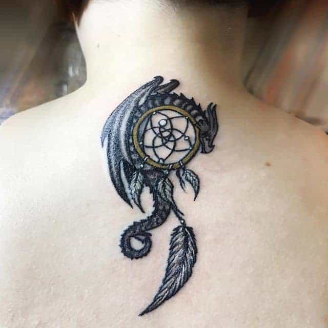 Чоловіки часто вибирають місце тату на руці, плечі, набивають тату ловець снів на нозі, литках. Цілу композицію можна створити з тату ловець снів на спині. Через величезні площі поверхні спини, ескіз можна доповнити безліччю елементів, зобразивши цілу історію в ньому. А ось людині, яка має на меті наділити знак виключно захисними характеристиками оберега, краще вибрати місце для тату ловець снів на шиї. Дівчата легко зможуть заховати його за волоссям, а чоловіки під одягом. Крім того, вважається, що чим ближче малюнок до голови, тим сильніше його вплив на людину. Досвідчений майстер студії «Альянс» у Києві створить ескіз спеціально для Вас.