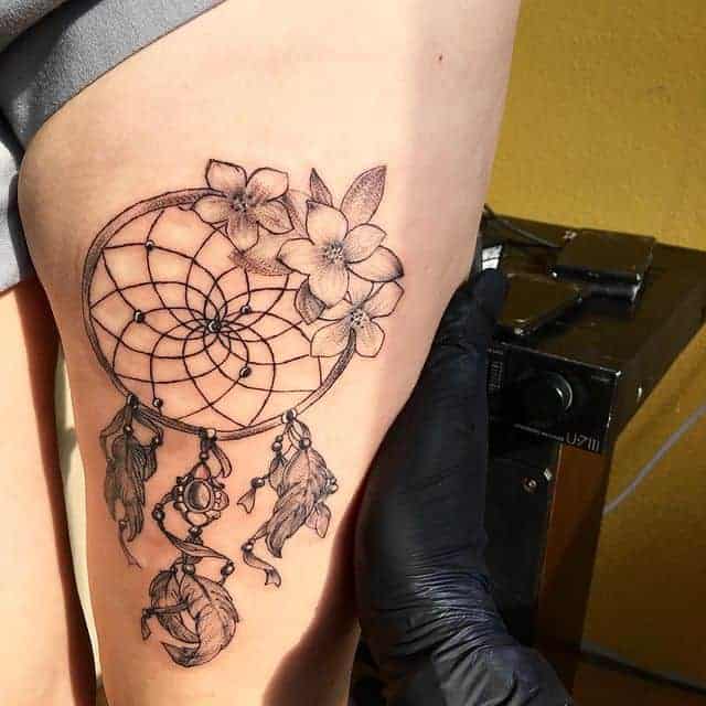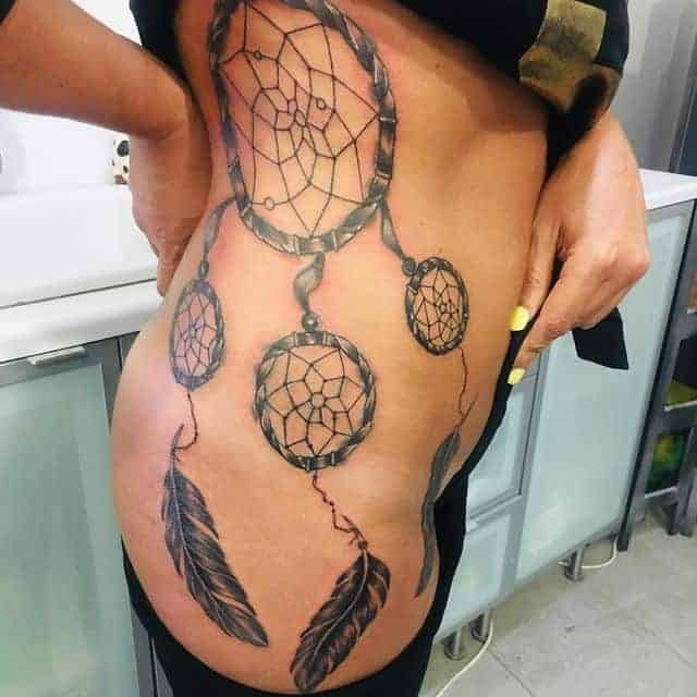 Місце нанесення картинки може підійти будь-яке. Ловець снів татуювання на зап’ясті частіше вибирають дівчата. Ідеально також для них підійде місце на ребрах. Хоч процес нанесення буде досить болючим, проте виглядати буде дуже жіночно, привабливо. При чому заховати картинку дуже легко при необхідності. Популярні також жіночі тату ловець снів на стегні.