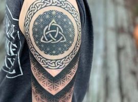 Мандала – це буддійський сакральний символ. Являє собою складний візерунок, вписаний в коло. Є символом цілісності світу, гармонії. Вона допомагає зберігати спокій і приймати правильні рішення. Зазвичай роблять таке тату на спині або передпліччя.