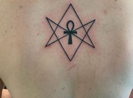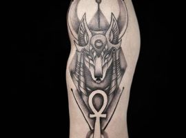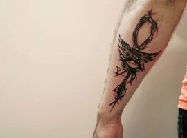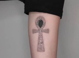 Анкх – давньоєгипетський знак вічності буття. Складається з хреста, що символізує життя, і петлі, яка уособлювала безсмертя і циклічність всього сущого. Тату означає добробут, щастя, мудрість, внутрішню силу.