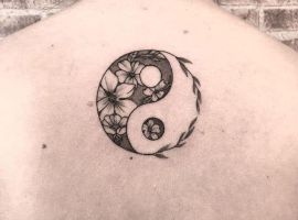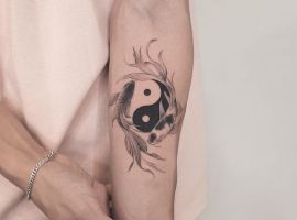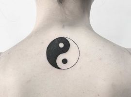 Інь-Ян – буддійський символ нескінченної боротьби протилежностей, що створює гармонію і рівновагу. Талісман, що допомагає знайти себе, досягти спокою й умиротворення. Чорна крапля – жіноче начало, Місяць, пасив, земля. Біла крапля – чоловіче начало, Сонце, актив, світло. Тату підкреслює вміння радіти життю незалежно від обставин.