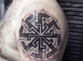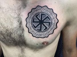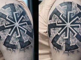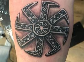 Свастика – давньослов’янське солярний символ з сильною позитивною енергією. Чи означає нескінченне рух життя, переродження, розвиток. Тату робить життя впорядкованої, сприяє особистісному зростанню. Може стати оберегом від зла.