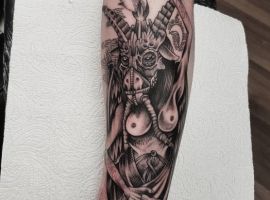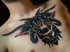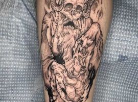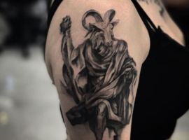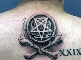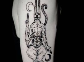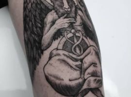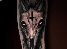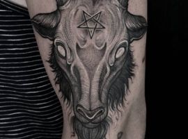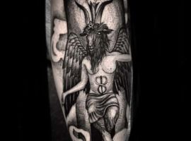 Бафомет – енергійно сильний символ сатанізму, образ Диявола. Тату для тих, хто дотримується сатанинського світогляду, не підкоряється правилам моралі, оспівує егоїзм, незалежність, задоволення власних бажань, непідконтрольність суспільству.