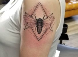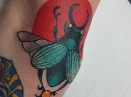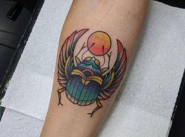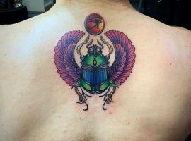 Жук скарабей – енергетично сильний давньоєгипетський символ початку життя. Універсальний талісман, що змінює життя на краще. Дарує здоров’я, мудрість, довголіття, щастя, багатство. Тату рекомендується тим, хто хоче стати щасливим, фінансово забезпеченим.