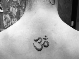 Знак «Ом» – мантра створення всього сущого. Тату несе енергію Всесвіту, гармонізує внутрішній стан людини, стає талісманом, що захищає від бід, що направляють до духовного і особистісного розвитку.