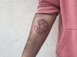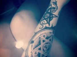Магічний пентакль Соломона – древній оберіг і талісман. Допомагає залучити надприродні сили, темні або світлі, для досягнення бажаного в обраній сфері. Тату захищає від недоброзичливців, дає енергію, направляє по вірному шляху, дарує удачу в будь-яких починаннях.
