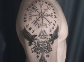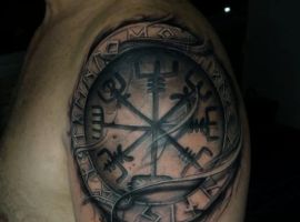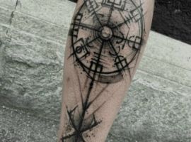 Ісландський Вегвізір – рунічний компас. Привертає по вірному життєвому шляху, допомагає в пошуку призначення, дарує удачу. Це тату зі значенням оберега для сильного, наполегливої, цілеспрямованої, мужньої людини.