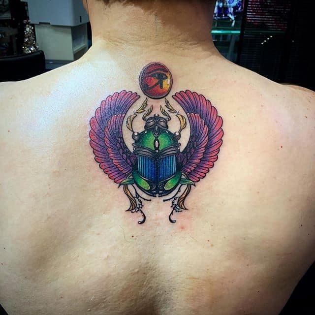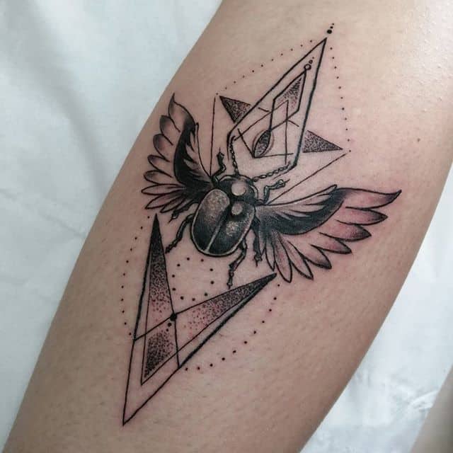 Жук скарабей – енергетично сильний давньоєгипетський символ початку життя. Універсальний талісман, що змінює життя на краще. Дарує здоров’я, мудрість, довголіття, щастя, багатство. Тату рекомендується тим, хто хоче стати щасливим, фінансово забезпеченим.
