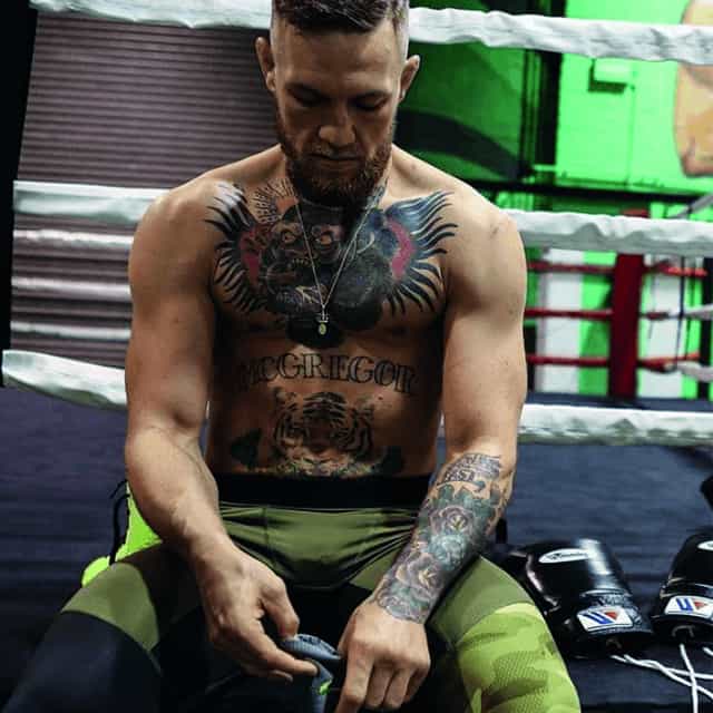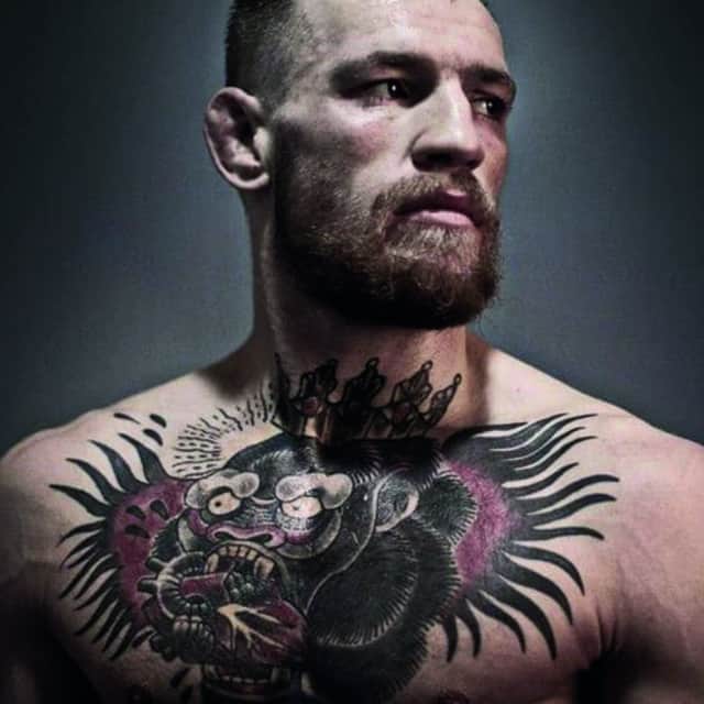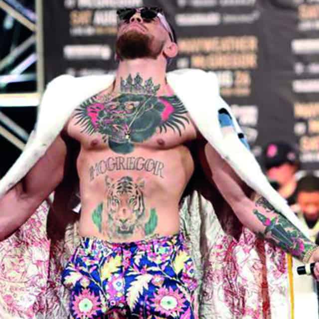 Конор Макгрегор – боєць ММА ірландського походження, екс-чемпіон UFC і підприємець, що володіє власним брендом віскі «Proper Twelve». Крім спортивних досягнень Конор прославився своїми зухвалими манерами поведінки і брутальним образом, важливою складовою якого стали татуювання Макгрегора, які приваблюють людей по всьому світу і в Києві.