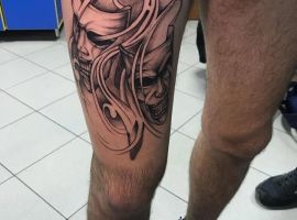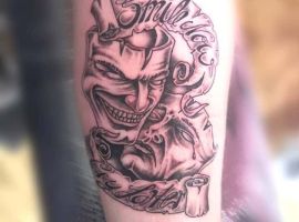 Татуювання маски театральні виглядають заворожуюче і привабливо. Маски здавна використовувалися для того, щоб приховувати особистість людини. Для багатьох татуювання з масками стають саме відображенням їх інтригуючою і таємничої натури. Але може бути ви просто дуже любите театральні виступи і хочете таким символом продемонструвати свої пристрасті? У будь-якому випадку майстри тату салону Альянс в Києві виконають для вас ідеальний ескіз тату у відповідності з усіма побажаннями.