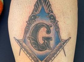 Ще одними поширеними масонськими символами вважають циркуль і косинець. Ці татуювання говорять про бажання дізнаватися нову інформацію, ділитися нею з іншими і готовність обмежувати свої потреби. Завжди по центру малюнка пишуть букву G, яка символізує Господа (God), який завжди за нами спостерігає і в курсі всього, що відбувається, навіть ретельно приховуваного.