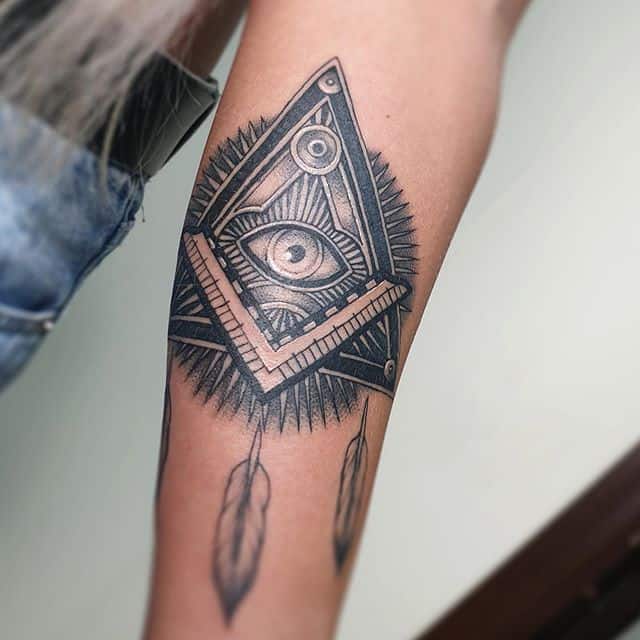 Цей малюнок являє собою зображення ока, розміщеного в трикутнику. Мабуть, це самий знаменитий масонський символ у світі. Його можна побачити в ескізах для тату, на будівлях, на грошових купюрах, ритуальних чи містичних атрибутах і так далі.