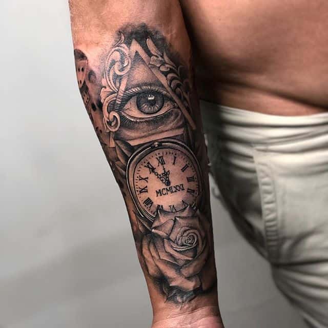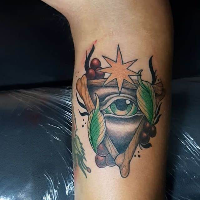 Татуювання масонського ока символізує мудрість, особливі і унікальні знання, совість, просвіта. Це образ Космічного розуму, Сонця. Згадки про Всевидяче Око можна знайти практично у всіх культурах і релігіях, навчаннях. Перші згадки про нього належать єгипетській культурі. Стародавні єгиптяни вважали, що цей символ володіє дуже потужною силою і енергією. Як амулет його носили навіть фараони і малювали око на стінах храмів і гробниць. У ті часи це був знак просвітлення, істини, вищого розуму.