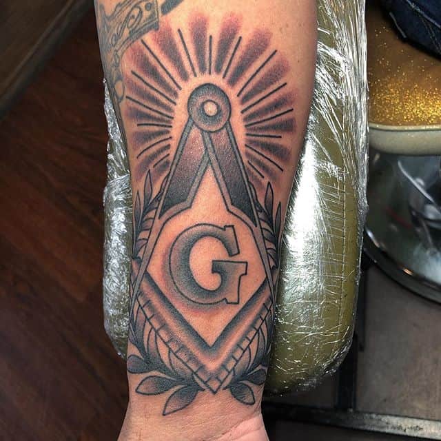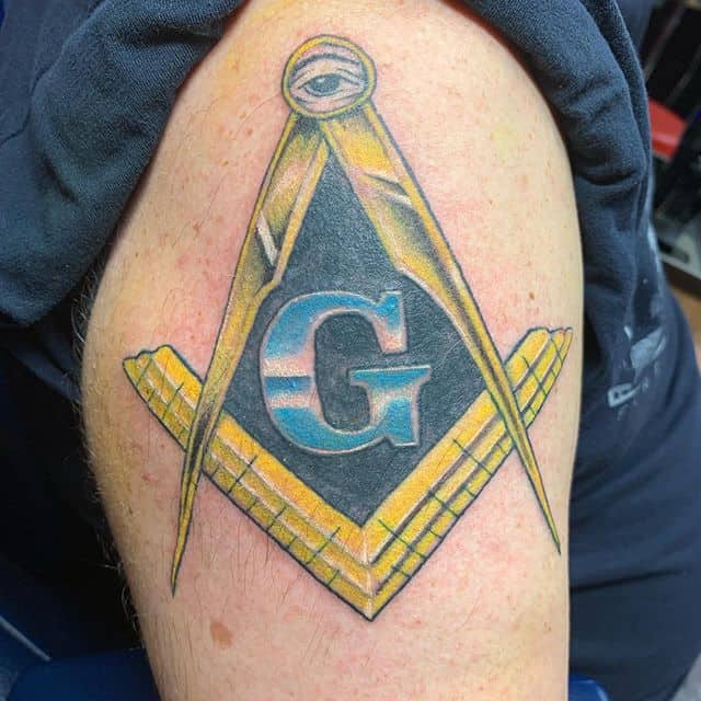 Ще одними поширеними масонськими символами вважають циркуль і косинець. Ці татуювання говорять про бажання дізнаватися нову інформацію, ділитися нею з іншими і готовність обмежувати свої потреби. Завжди по центру малюнка пишуть букву G, яка символізує Господа (God), який завжди за нами спостерігає і в курсі всього, що відбувається, навіть ретельно приховуваного.