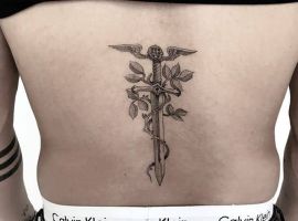 - Тату ангел з мечем. Праведність, бажання жити в гармонії зі світом.