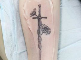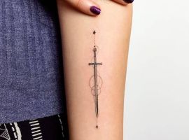 Вибирають малюнки меча або катани і дівчата. В такому випадку вони хочуть підкреслити сильні сторони свого характеру. Така тату на руці, нозі – відмінний спосіб показати самодостатність. Ця жінка може бути прекрасною матір’ю, дружиною, але ніколи не дозволить командувати собою. Тату стає для жінок свого роду знаком рівноправності. Можна побачити по фото – тату меч для жінок відрізняється по виконанню.