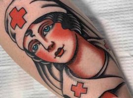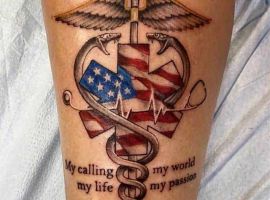 1. Татуювання, які відносяться до першого виду, зазвичай наносять собі співробітники медичної сфери! Вони можут бути у вигляді червоного хреста, різні лікарські фрази та цитати, часто на латині. Історії відомі також випадки, коли лікарі свої татуювання (в основному, це невеликі тату) робили після кожного врятованого їм пацієнта. Ще одним варіантом медичних татуювань є малюнки і зображення До першого виду можна віднести сюжет із зображенням червоного хреста, всесвітньої лікарської організації, різних деталей, які вказують на напрямок їх лікарської діяльності. Наприклад, око для окуліста або ніс для лора тощо…