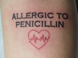 Другий випадок – це алергія на певні препарати і ліки, а також інформація про групу крові. Найчастіше медичні тату роблять на зап’ясті, де якраз і вказують назви того, що може викликати алергійну реакцію. Не маючи такої інформації, лікар може дати людині ліки, яке навпаки може тільки нашкодити здоров’ю хворого і викликати небажані наслідки.