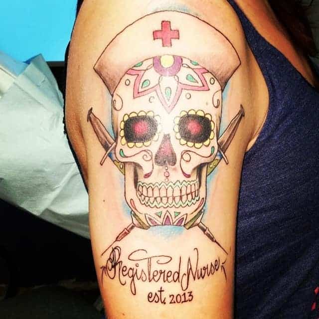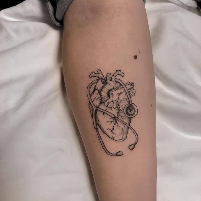 1. Татуювання, які відносяться до першого виду, зазвичай наносять собі співробітники медичної сфери! Вони можут бути у вигляді червоного хреста, різні лікарські фрази та цитати, часто на латині. Історії відомі також випадки, коли лікарі свої татуювання (в основному, це невеликі тату) робили після кожного врятованого їм пацієнта. Ще одним варіантом медичних татуювань є малюнки і зображення До першого виду можна віднести сюжет із зображенням червоного хреста, всесвітньої лікарської організації, різних деталей, які вказують на напрямок їх лікарської діяльності. Наприклад, око для окуліста або ніс для лора тощо…