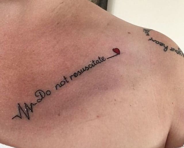 Але чи можна вважати татуювання на тілі точним позначенням факту, що у людини є якісь хвороби, при яких реанімаційні заходи не приведуть до позитивного результату? Насправді ні. Лікарська бригада рятувальників не буде сприймати татуювання, як знак того, що при наявності можливості врятувати людину його не варто рятувати. Якщо медики через одне лише татуювання не проведе реанімацію, то це буде суперечити нормам діючого законодавства. Але в будь-якому випадку тату з написом «Не реанімувати» стає відображенням волі і бажання людини і допомагає прийнятий рішення в деяких випадках, наприклад коли потрібна згода родичів і збір підписів для прийняття рішення з приводу реанімації або підтримання життєдіяльності.