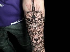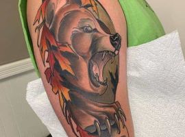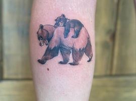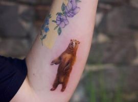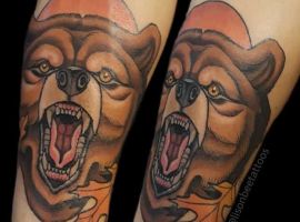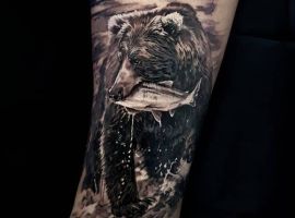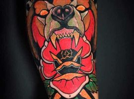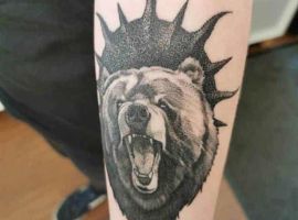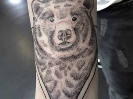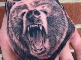 Бурий ведмідь. У більшості випадків, таке тату несе значення для чоловіків, як: сила, міць, сміливість духу, безстрашність. Таку ідею скоріше виберуть собі сильні характером люди – вони точно знають, чого хочуть від життя.
