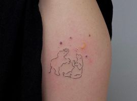 Нерідко зустрічається варіант зображення тварини в поєднанні з зірками. Зображується сузір’я великої чи малої ведмедиці. Така тату буде символізувати віру в силу Всесвіту і її загадки, взаємозв’язок всього живого і неживого в світі.
