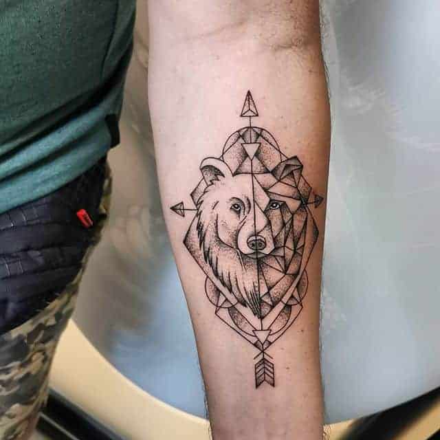 Найпопулярніші стилі для тату ведмедя – реалізм, графіка, геометрія.