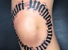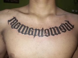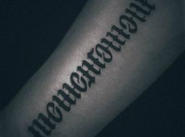 Звичайно, найчастіше таку серйозну фразу обирають чоловіки. І відповідно, шрифт краще вибирати грубіший, наприклад, готичний. Особливо сміливі чоловіки наносять напис у великому обсязі: на всю ширину грудей чи спини, на все передпліччя. Або ж на таких помітних місцях як шия чи кисть.