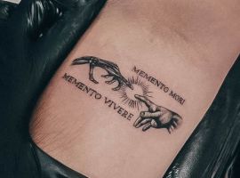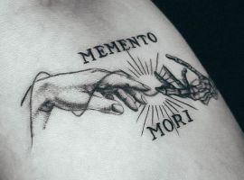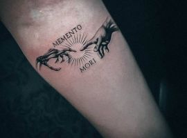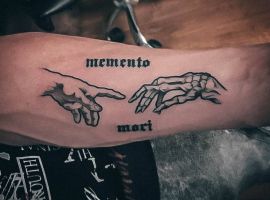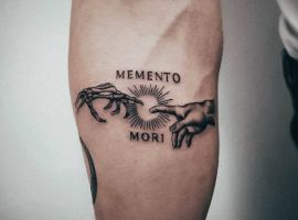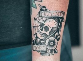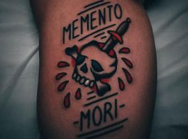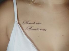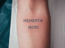 Татуювання у вигляді написів були і залишаються найпопулярнішими. Кожен вибирає фразу, яка відображає внутрішній світ, погляди, девіз по життю, переконання та смаки. Особливо популярні крилаті висловлювання латиною. Адже фрази великих мислителів і філософів минулого пройшли сторіччя, і все одно залишилися актуальними. Однією з таких фраз є Memento Mori (Моменто морі).