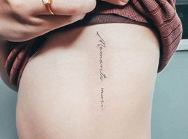 Татуювання на стегні написи