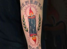 Тату «Memento Mori» найкраще робити на довгастих частинах тіла, як довгий напис. А це: