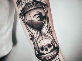 - Годинник або пісочний годинник. Це символ часу. А наша фраза – це нагадування цінувати життя, цінувати час, кожний момент. У такому поєднанні значення татуювання посилюватиметься та підкреслюватиметься.