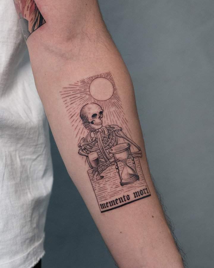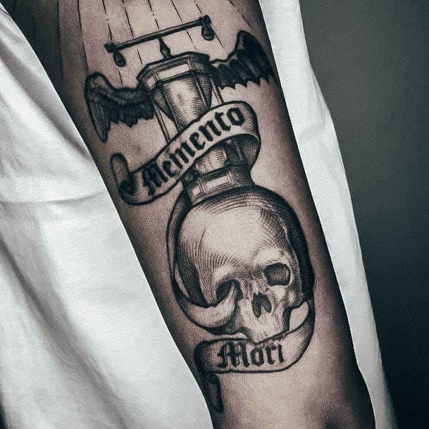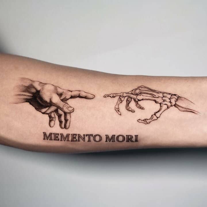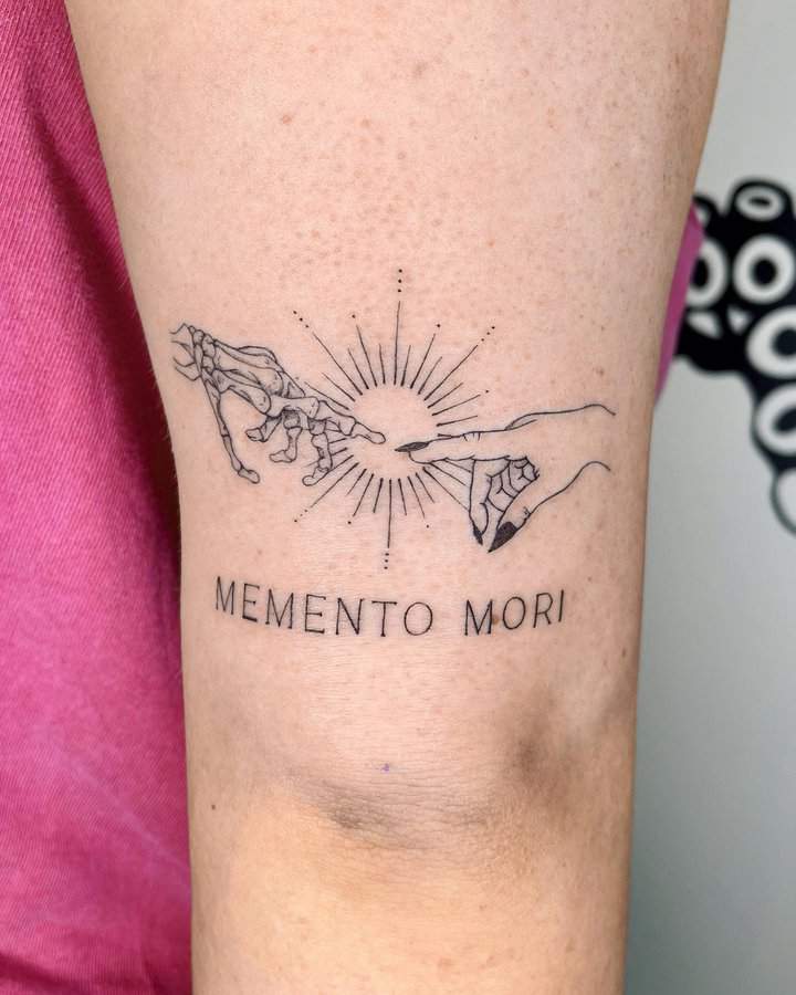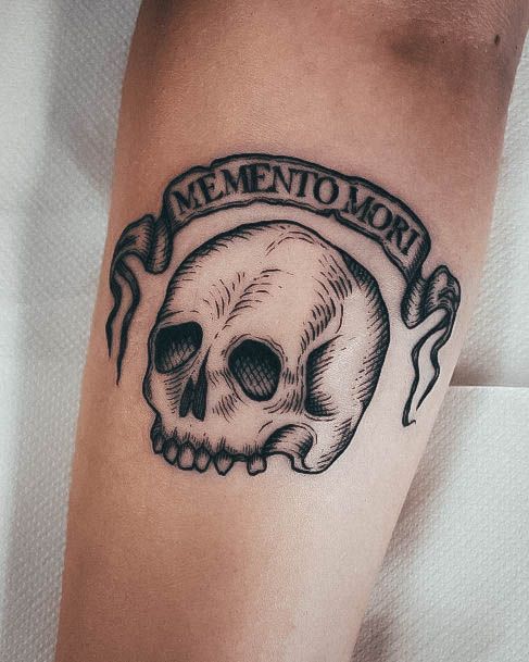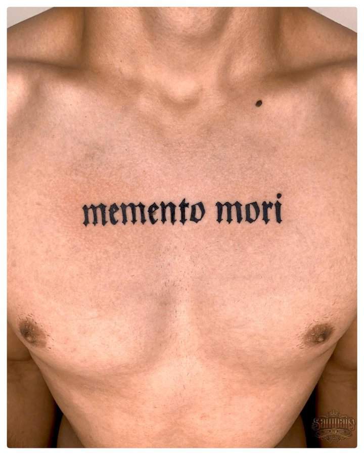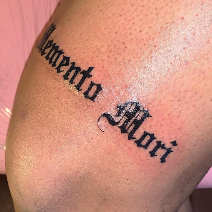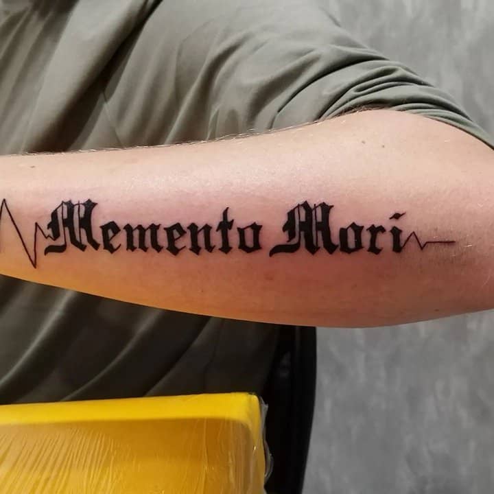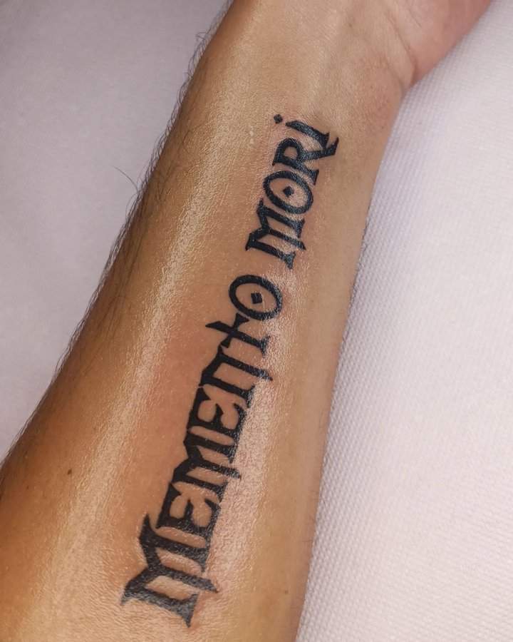 Тату «Memento Mori» найкраще робити на довгастих частинах тіла, як довгий напис. А це: