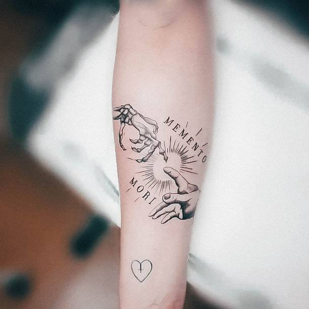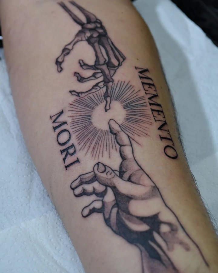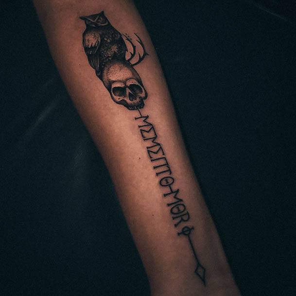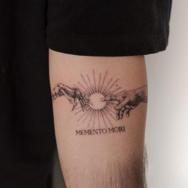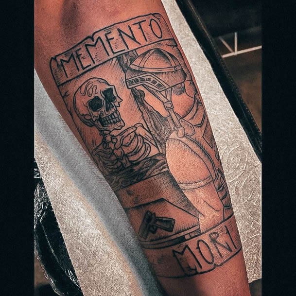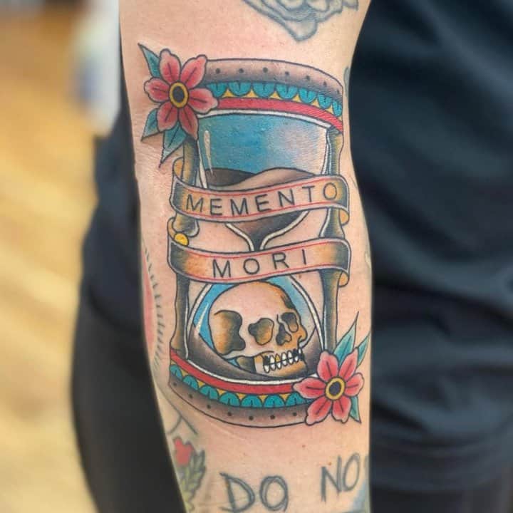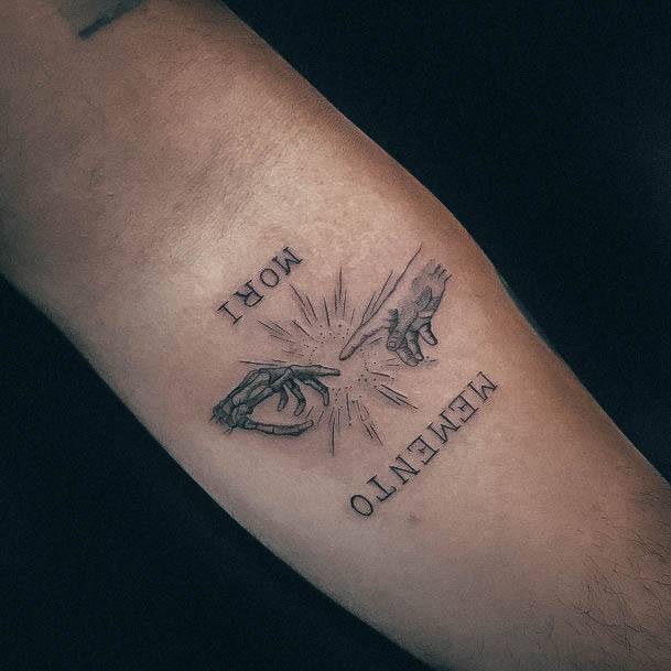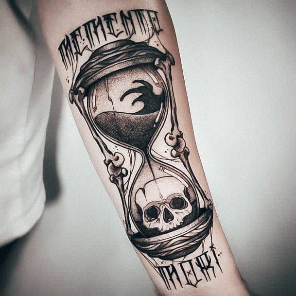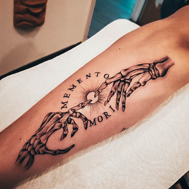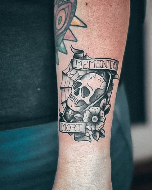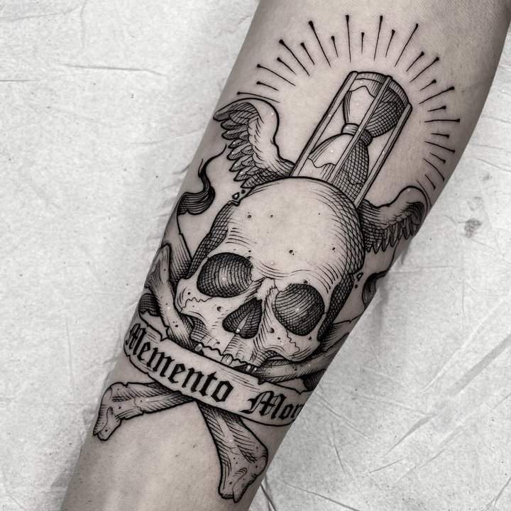 Тату «Memento Mori» найкраще робити на довгастих частинах тіла, як довгий напис. А це: