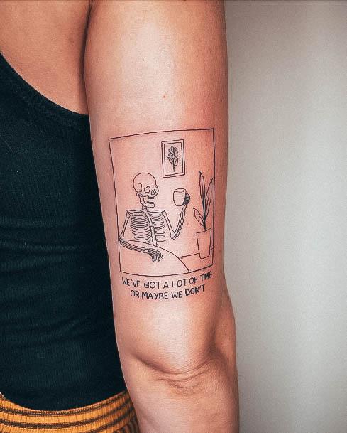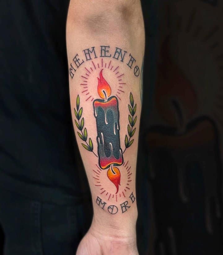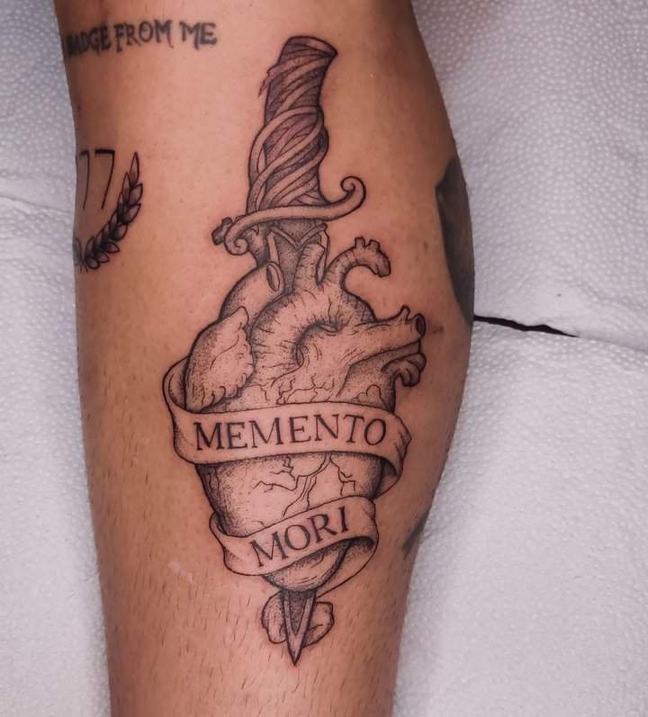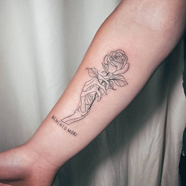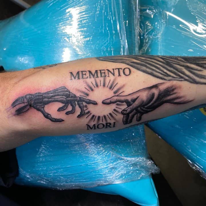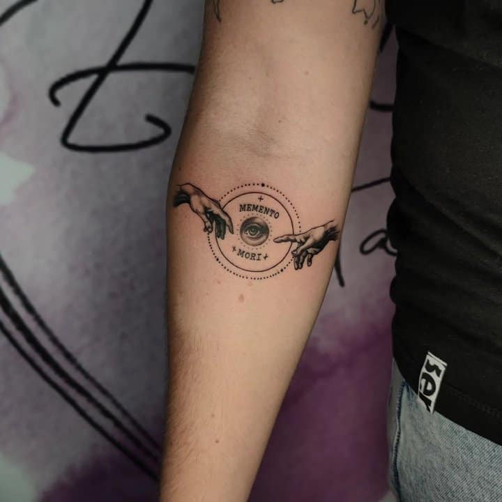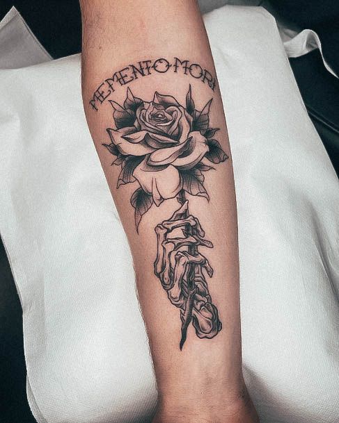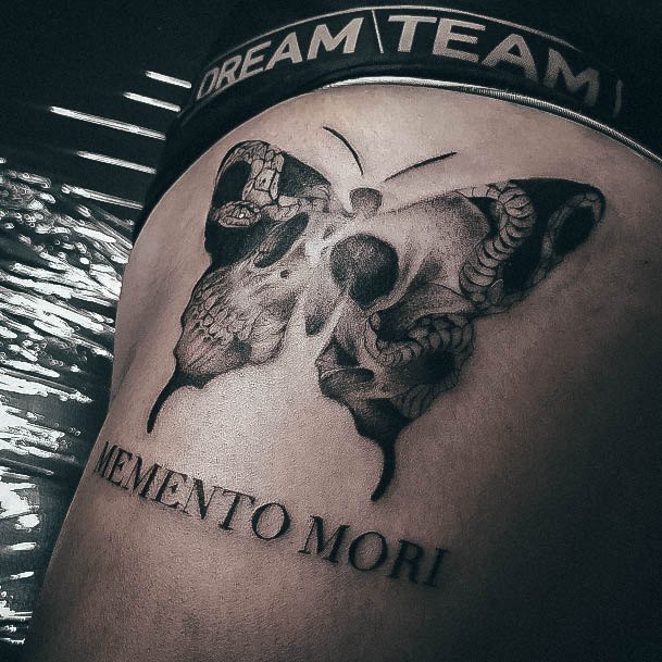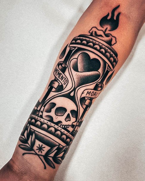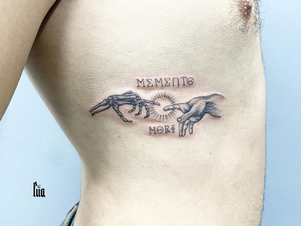 Тату «Memento Mori» найкраще робити на довгастих частинах тіла, як довгий напис. А це: