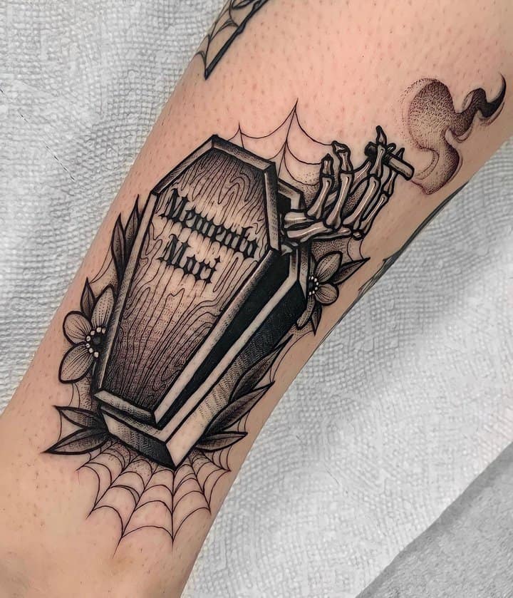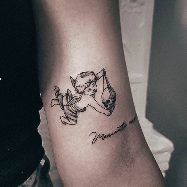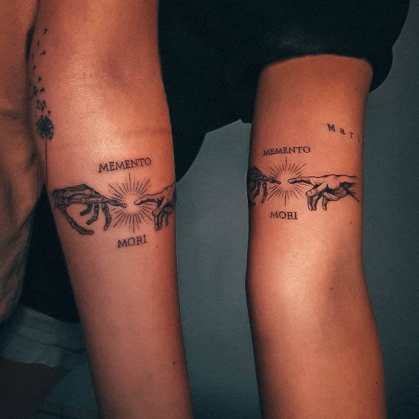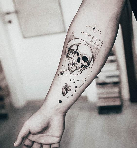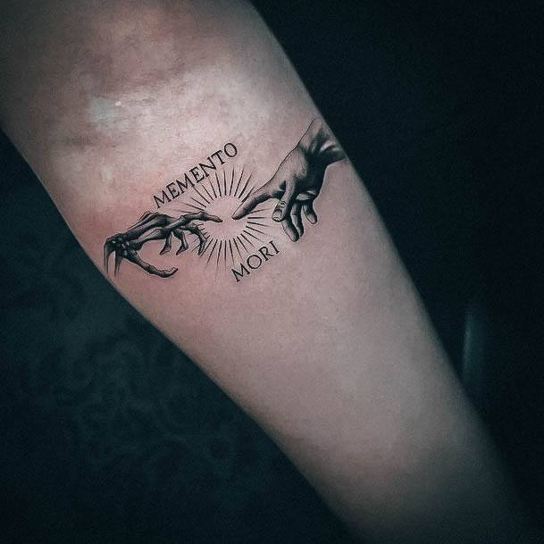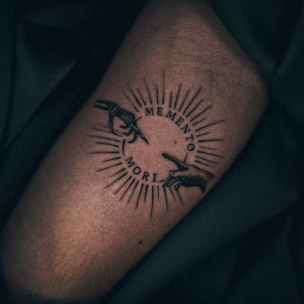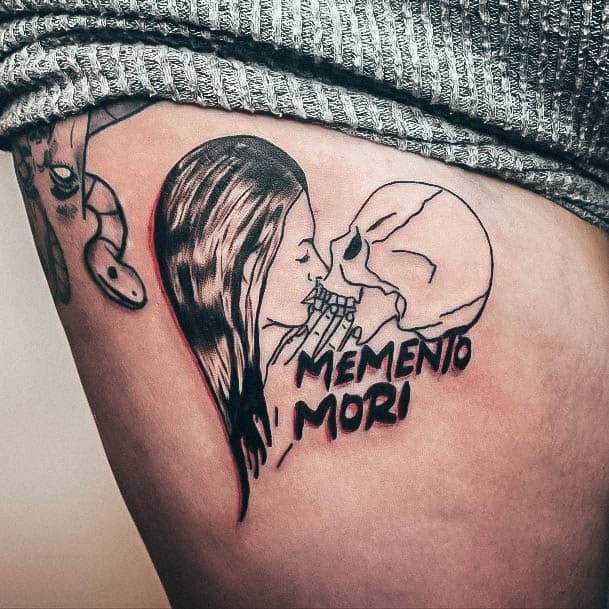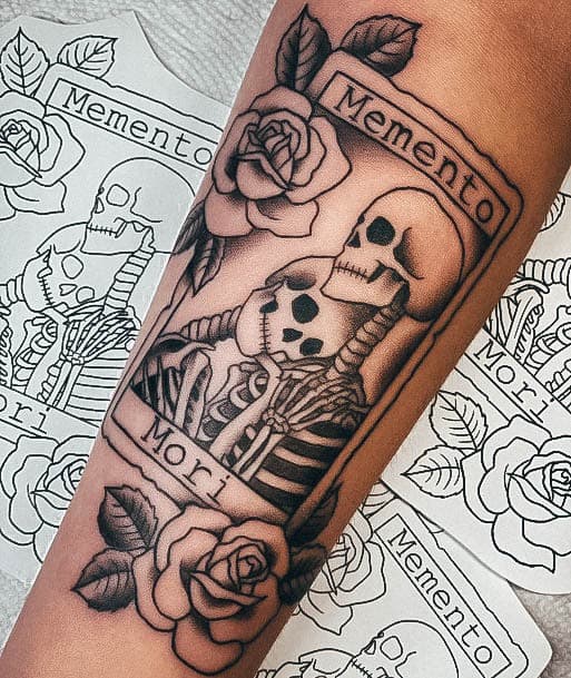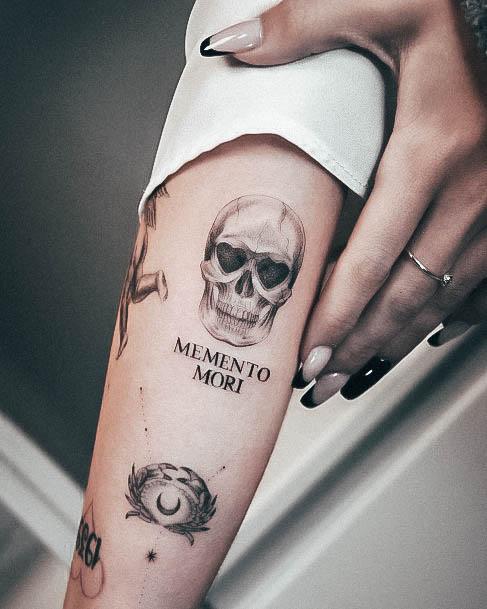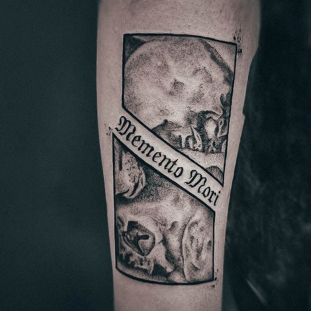 Часто фраза виступає не окремим татуюванням, а частиною тату-композиції, або в парі з якимись символами. За змістом та стилістикою є кілька тату-образів, які можна вдало поєднати з написом Memento Mori.