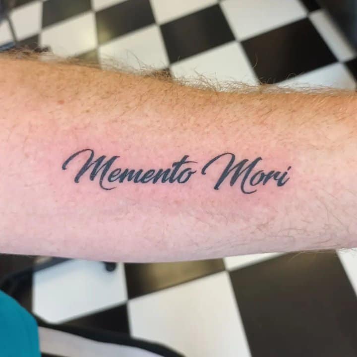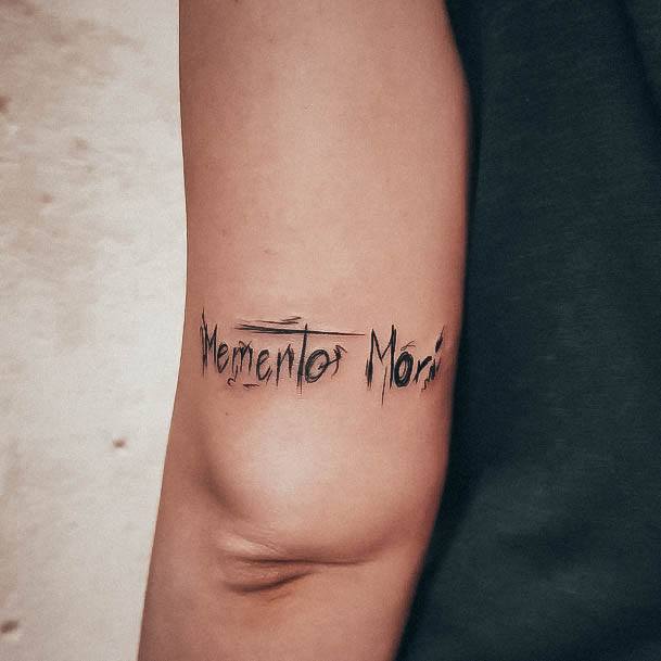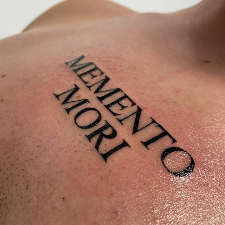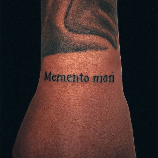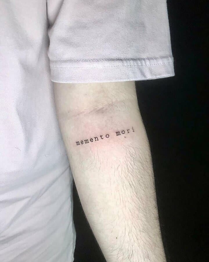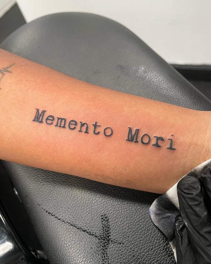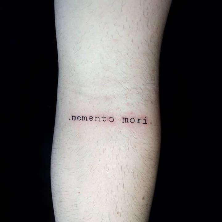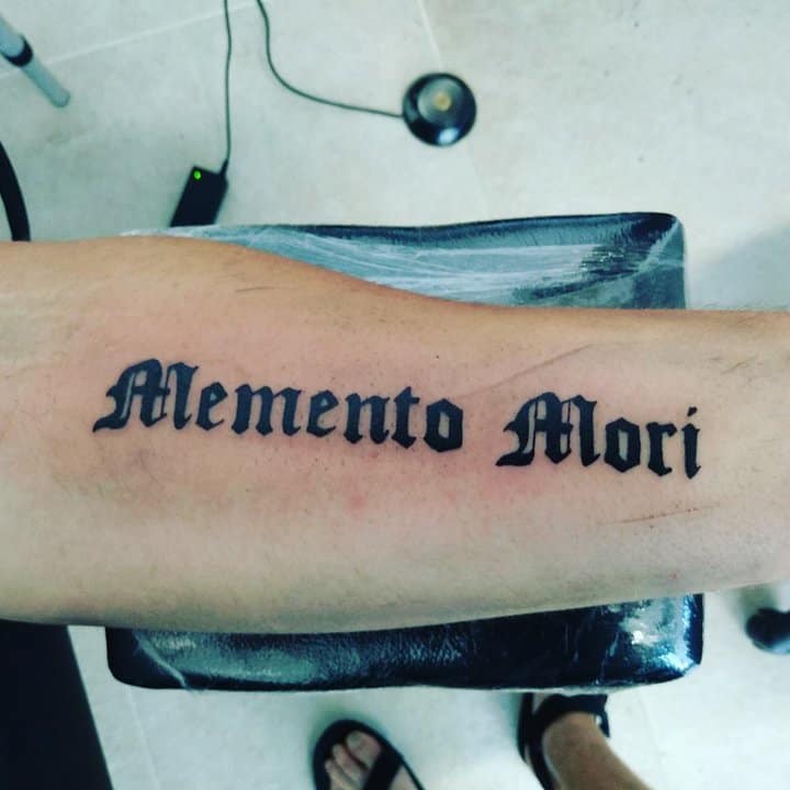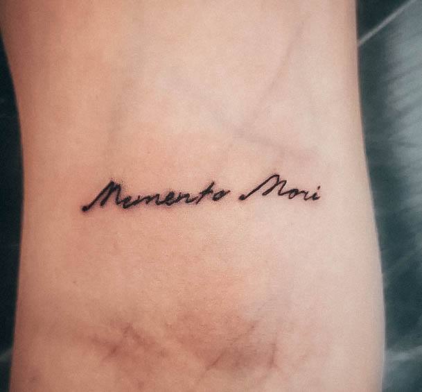 Татуювання у вигляді написів були і залишаються найпопулярнішими. Кожен вибирає фразу, яка відображає внутрішній світ, погляди, девіз по життю, переконання та смаки. Особливо популярні крилаті висловлювання латиною. Адже фрази великих мислителів і філософів минулого пройшли сторіччя, і все одно залишилися актуальними. Однією з таких фраз є Memento Mori (Моменто морі).