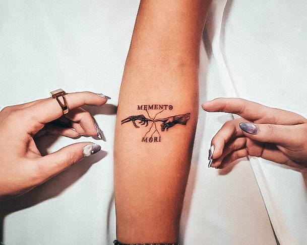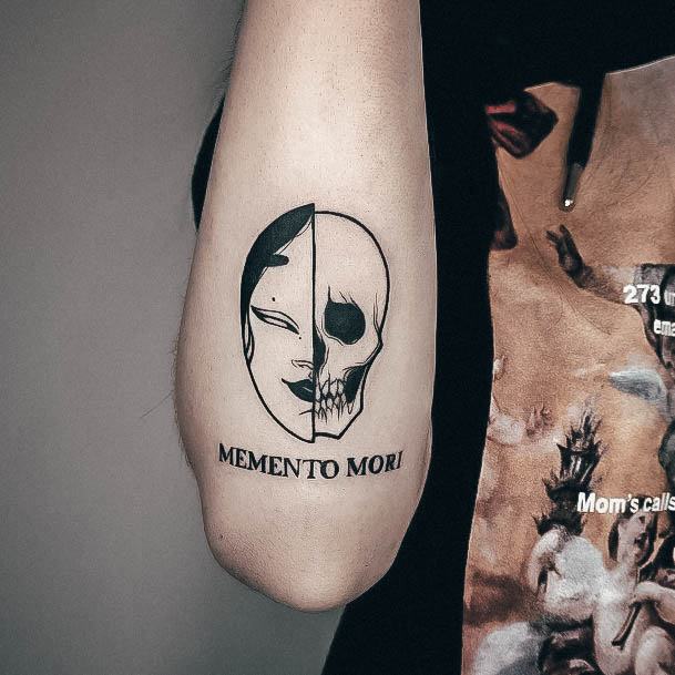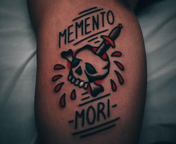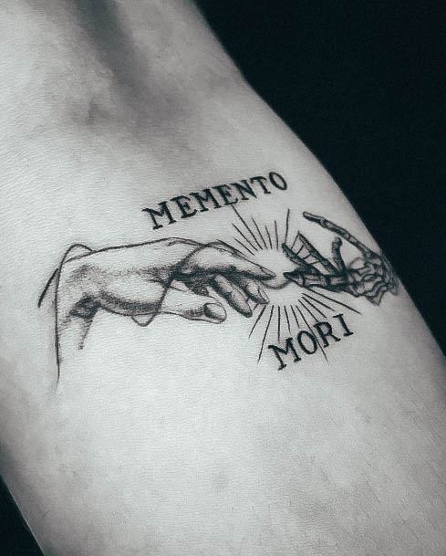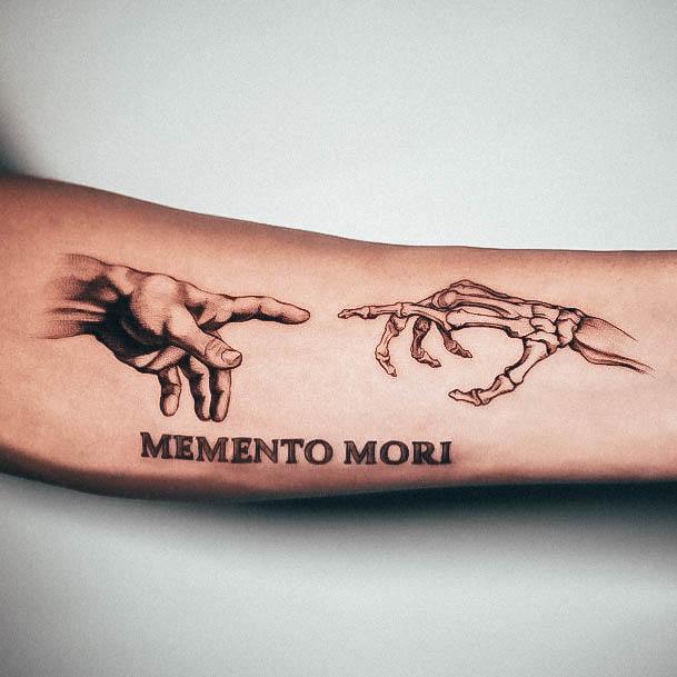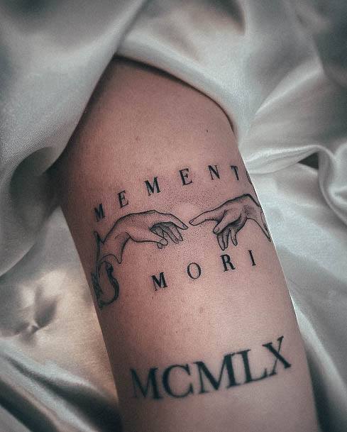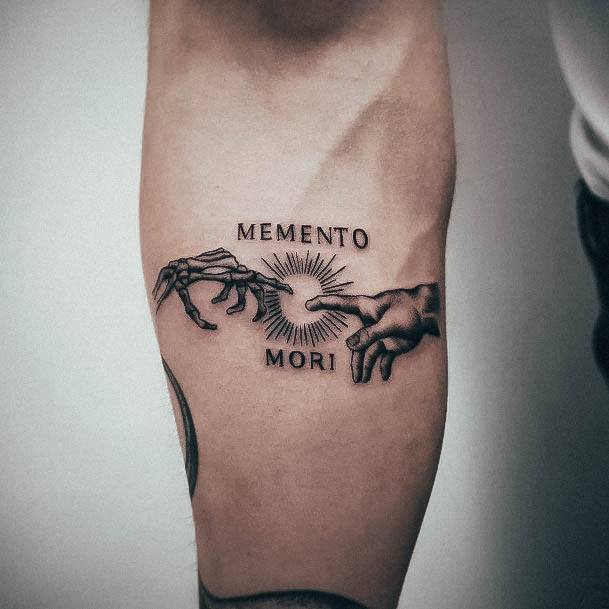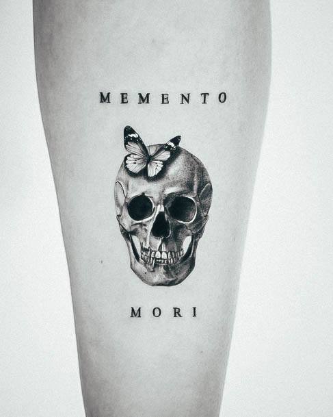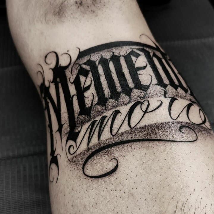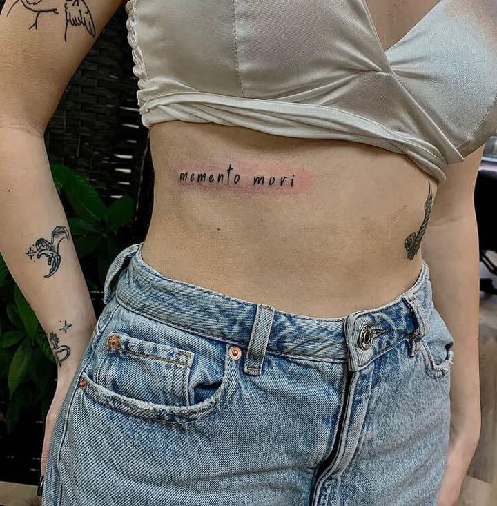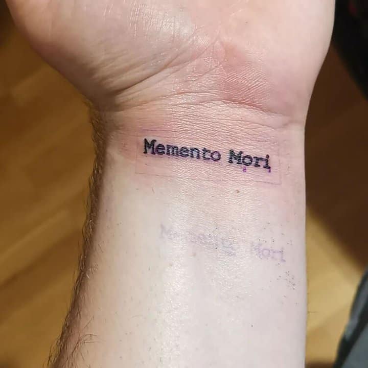 Татуювання у вигляді написів були і залишаються найпопулярнішими. Кожен вибирає фразу, яка відображає внутрішній світ, погляди, девіз по життю, переконання та смаки. Особливо популярні крилаті висловлювання латиною. Адже фрази великих мислителів і філософів минулого пройшли сторіччя, і все одно залишилися актуальними. Однією з таких фраз є Memento Mori (Моменто морі).