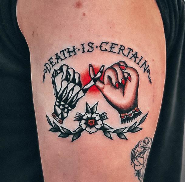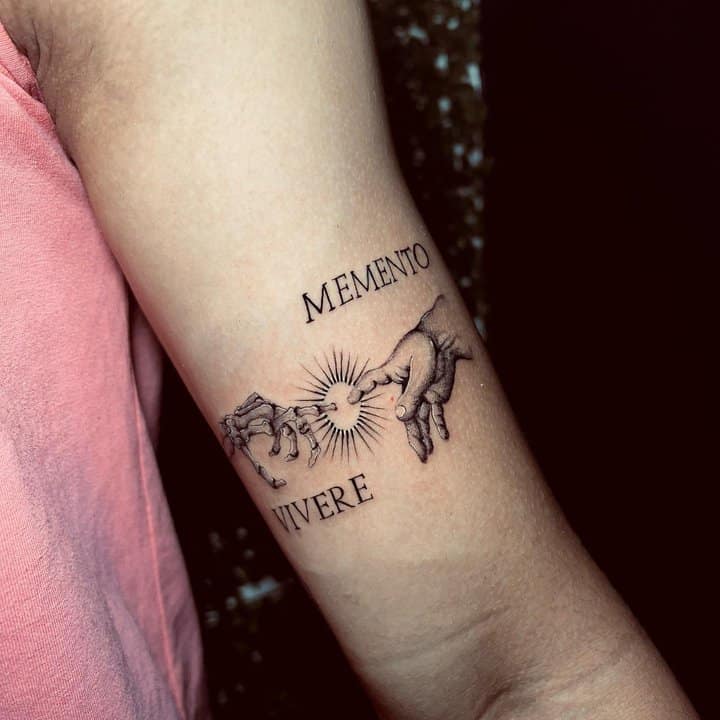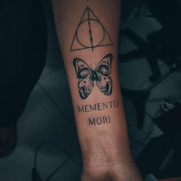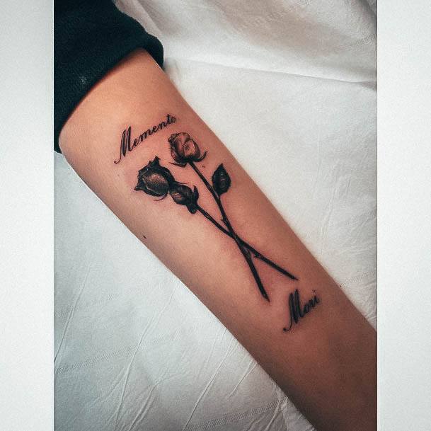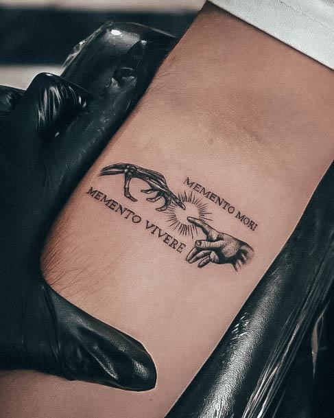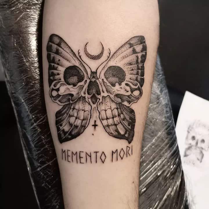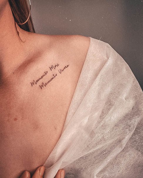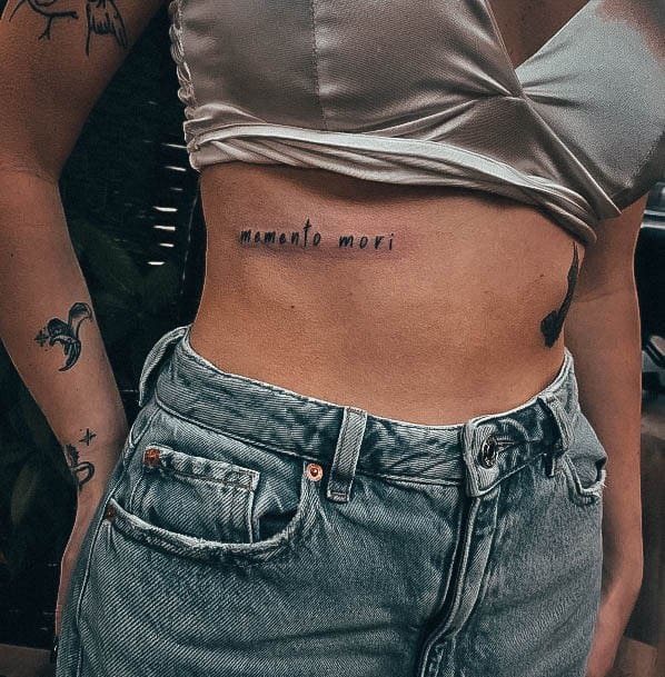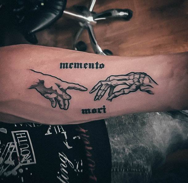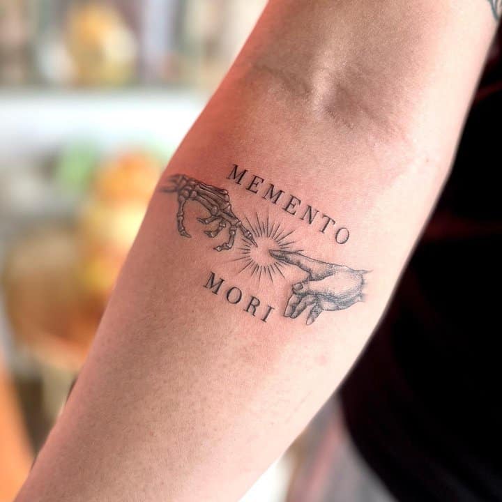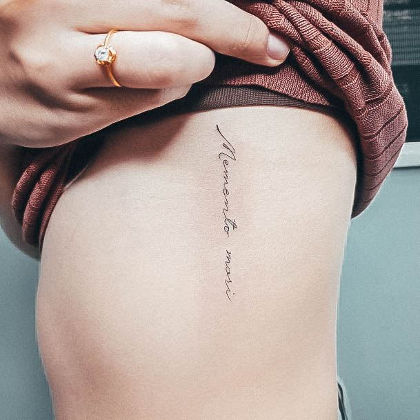 Татуювання у вигляді написів були і залишаються найпопулярнішими. Кожен вибирає фразу, яка відображає внутрішній світ, погляди, девіз по життю, переконання та смаки. Особливо популярні крилаті висловлювання латиною. Адже фрази великих мислителів і філософів минулого пройшли сторіччя, і все одно залишилися актуальними. Однією з таких фраз є Memento Mori (Моменто морі).