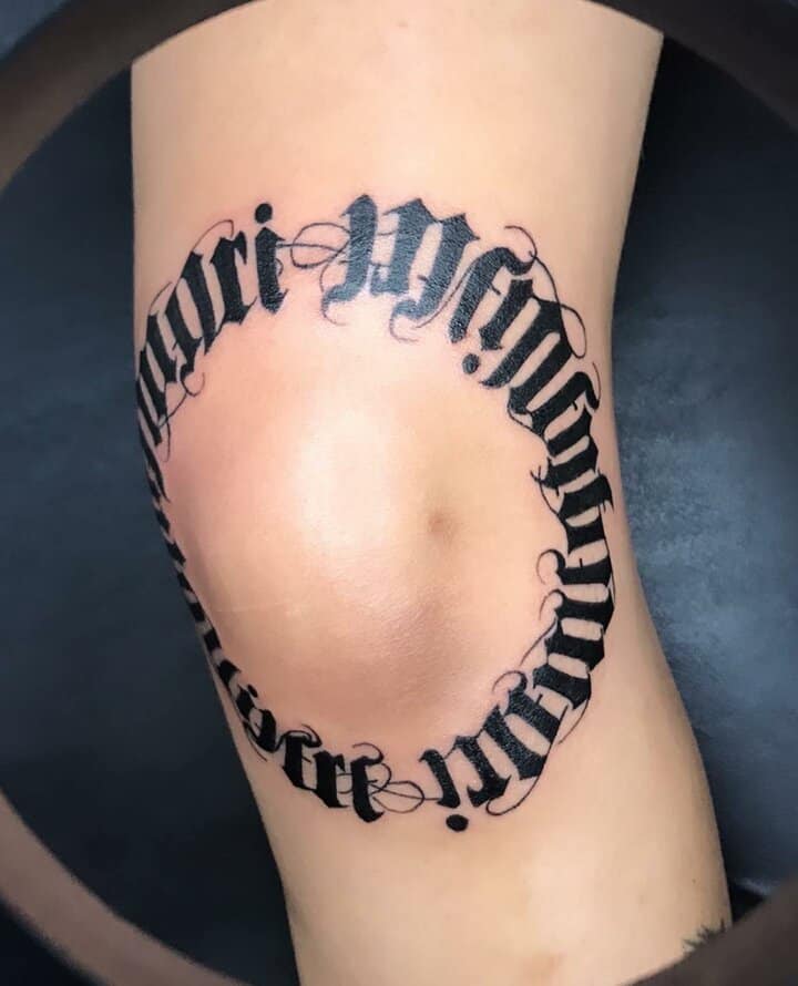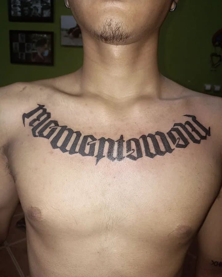 Звичайно, найчастіше таку серйозну фразу обирають чоловіки. І відповідно, шрифт краще вибирати грубіший, наприклад, готичний. Особливо сміливі чоловіки наносять напис у великому обсязі: на всю ширину грудей чи спини, на все передпліччя. Або ж на таких помітних місцях як шия чи кисть.