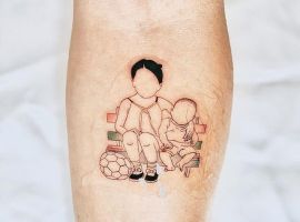 Іноді прояв сильних емоцій, наприклад, глибокі почуття по відношенню до близьких або тривала розлука спонукають чоловіка зробити татуювання. Зворушливо виглядають фігурки членів сім’ї, що тримаються за руки. Зазвичай при цьому дорослі і діти, зображені зі спини, крокують у напрямку до сонця або моря.