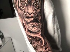 Навігаційний прилад символізує для чоловіка чіткість життєвих позицій, прагнення не сходити з наміченого шляху, рух до поставленої мети. Компас, зображений поверх географічної карти, демонструє пристрасть до подорожей. Прилад поруч з якорем означає, що пошуки пригод закінчуються яскравим фіналом. Компас чудово виглядає як на торсі, так і на кінцівках. Підходить для міні татуювань і складних сюжетів.